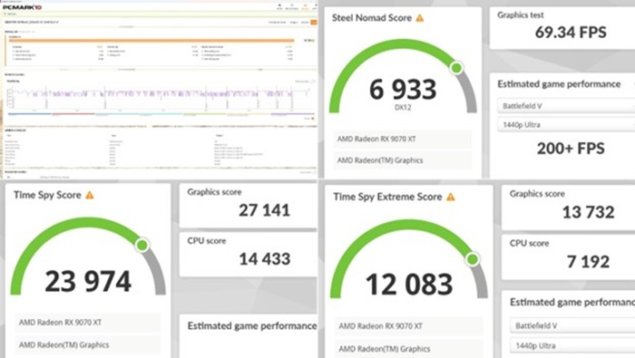 Tes selanjutnya adalah dengan tes grafis dengan menggunakan DirectX 12, 3DMark Time Spy dan Time Spy Extreme yang masing-masing mendapatkan skor 23.974 dan 12.083. Sementara itu, Steel Nomad mencatat 6.933 dan Port Royal untuk ray tracing berada di angka 17.779.