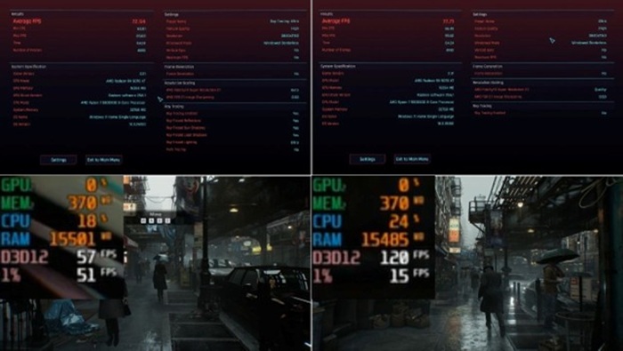 Uji coba game juga menjadi bagian yang paling menarik. Dalam skenario 4K dengan ray tracing, Cyberpunk 2077 bisa berjalan dengan rata-rata 72,94 FPS dengan setelan RT Ultra dan FSR Auto, sementara mode 4K non-ray tracing mencapai 77,71 FPS.
