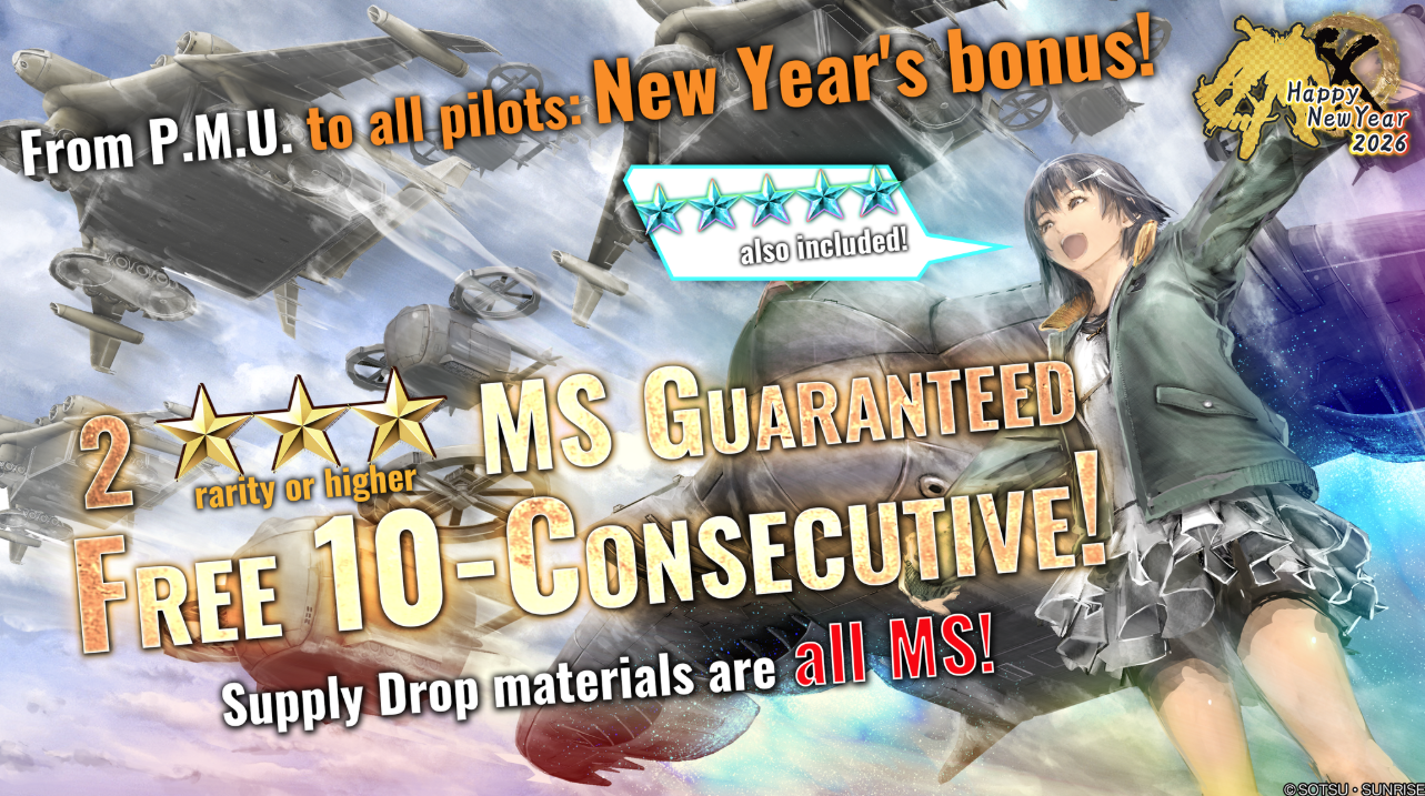 Bersamaan dengan kehadiran Crossbone Gundam X1 FC, event “Happy New Year 2026” akan berlangsung secara online-only di PlayStation 5 dan PlayStation 4, mulai 1 Januari hingga 15 Januari 2026 (SGT). Event ini menghadirkan berbagai bonus menarik, antara lain: