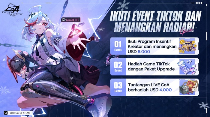 Preview event natal akan dimulai dari 18 Desember melalui Festival Snowbrush. Akan tersedia kostum senjata Natal S-grade, set pakaian tematik, termasuk mount rusa kutub dan anjing corgi untuk dua pemain. Tidak ketinggalan, event Crystal of Atlan X TikTok memberi kesempatan kreator berbagi total hadiah uang tunai hingga USD $10.000 melalui unggahan video dan live streaming dari periode 27 November–17 Desember 2025.