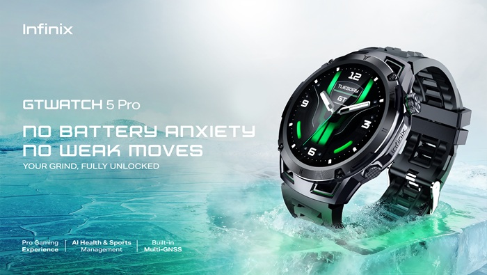 Tidak hanya smartphone, Infinix turut memperkenalkan GT Watch 5 Pro dan GT Buds 5 sebagai bagian dari ekosistem GT Verse. GT Watch 5 Pro dibekali fitur untuk memantau detak jantung, durasi bermain, serta sync game countdown yang memungkinkan pemain melihat waktu respawn langsung dari pergelangan tangan.