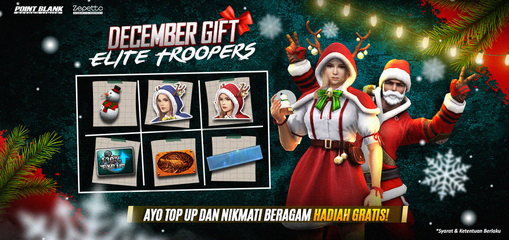 Tidak terasa kita telah mencapai di bulan terakhir pada tahun 2023, yaitu bulan Desember. Menyambut bulan Desember, game first-person shooter Point Blank telah mempersiapkan beragam event dan juga hadiah-hadiah menarik yang bisa didapatkan oleh pemain Point Blank atau dapat disebut sebagai Troopers. Dimulai dengan event login hingga event in-game, Troopers dapat menikmati segala keuntungannya mulai hari ini, 28 November 2023.