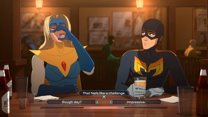 Inilah kekuatan utama Dispatch. Game ini tidak sekadar menjadikan Z-team sebagai bahan lelucon, tapi juga menggambarkan mereka sebagai manusia yang memiliki sifat emosional, dan mengalami konflik jati diri untuk menjadi superhero. Mereka lebih seperti orang yang sedang kehilangan arah, bukan sekedar monster satu dimensi yang tidak memiliki hati dan perasaan.
