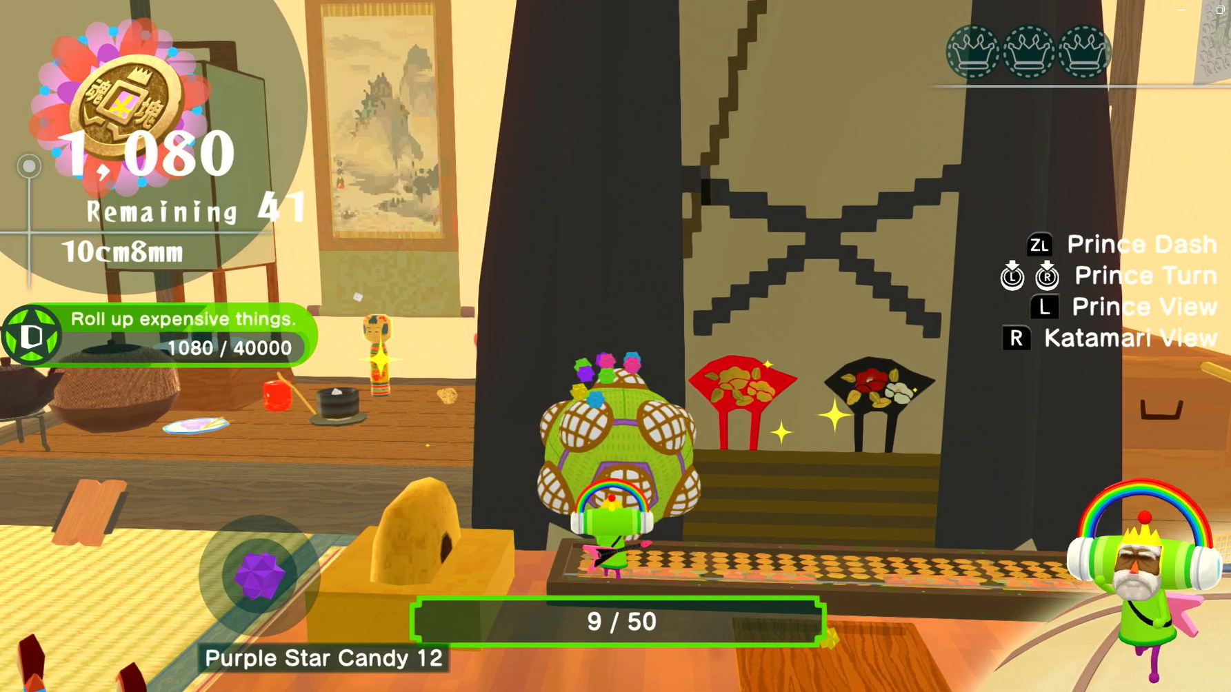 Versi Once Upon A Katamari menghadirkan dua skema kontrol: mode klasik dual-stick yang agak kaku tapi akurat, dan mode Simple yang lebih mudah buat pemain baru. Di Switch OLED, kontrolnya terasa nyaman dan responsif, meskipun kadang masih ada momen frustrasi ketika bola tersangkut di sudut ruangan atau kamera jadi bandel. Tapi ya… itu bagian dari pesonanya.