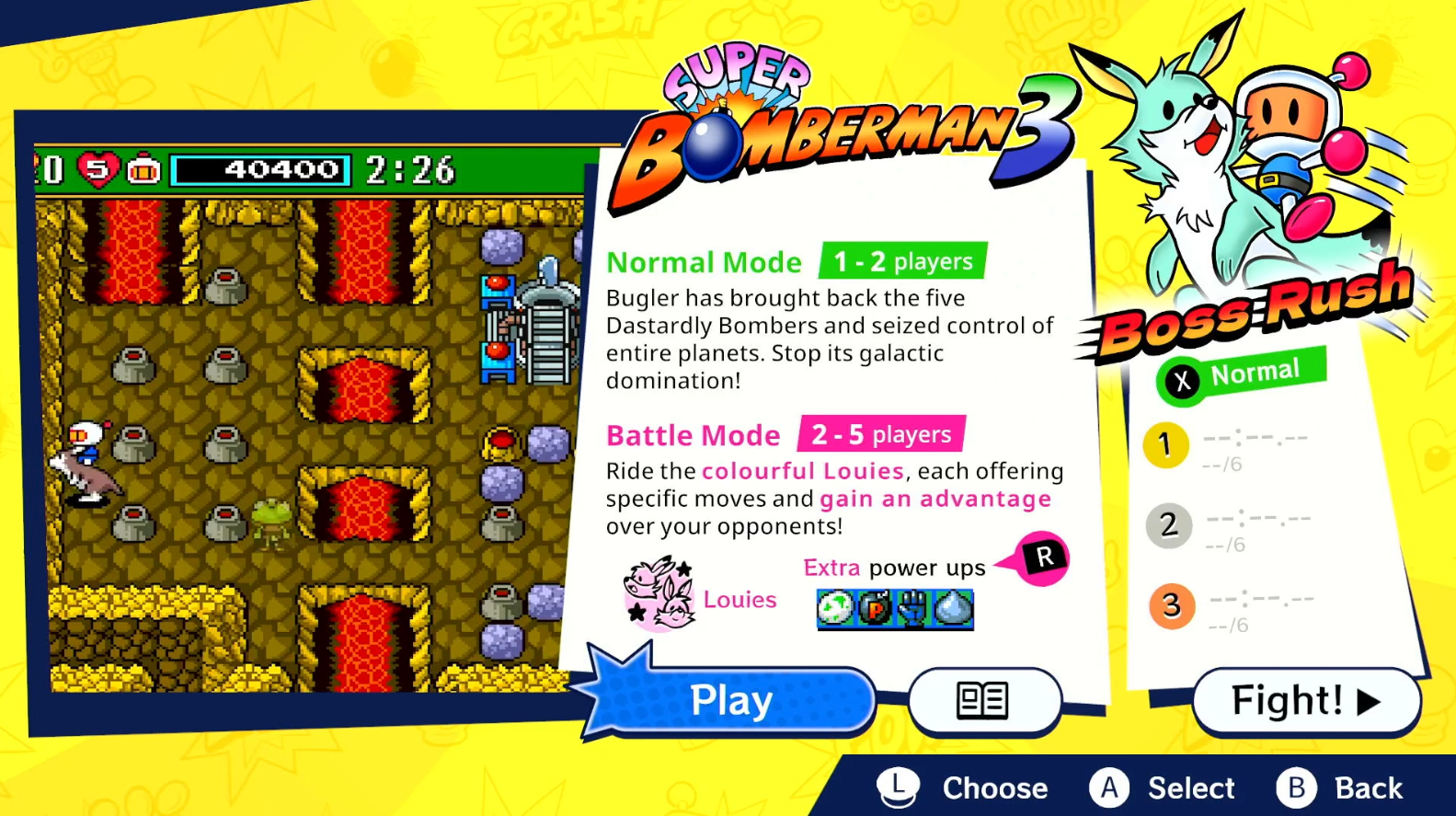 Super Bomberman Collection menghadirkan tujuh game klasik dalam satu paket: